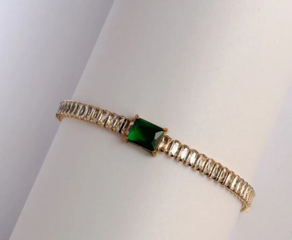 An elegant bracelet featuring radiant emerald-green stones, designed to add a touch of luxury and sophistication to any outfit. Perfect for special occasions or everyday elegance.